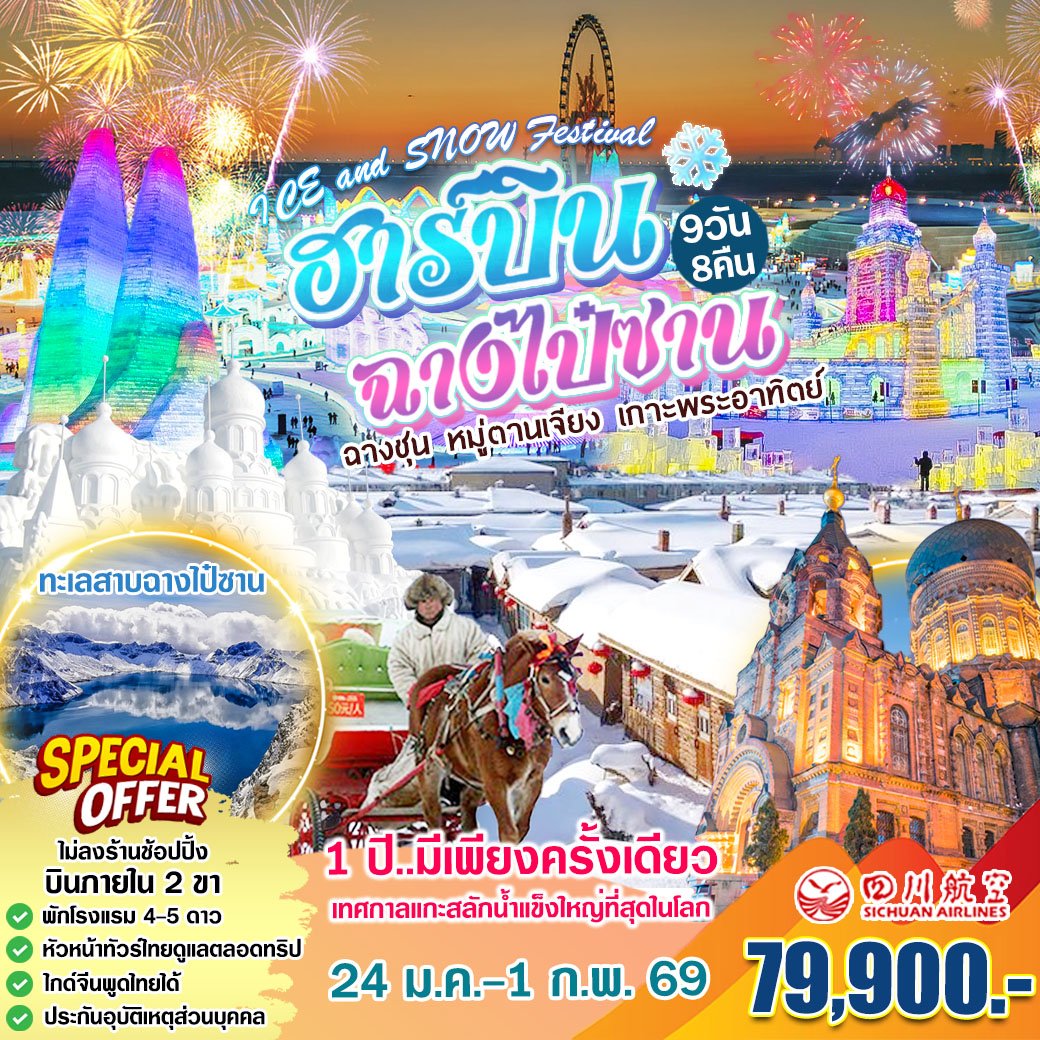 ทัวร์จีน : ฮาร์บิน ฉางชุน หมู่ตานเจียง ฉางไป๋ซาน (3U)