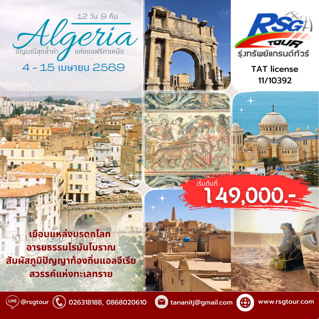 แอลจีเรีย: อัญมณีสุดล้ำค่าแห่งแอฟริกาเหนือ 12 วัน 9 คืน (ES) CODE : RSG-HDS-Algeria 12D 9N 2026เดินทางโดยสายการบิน: สายการบินEMIRATES
